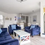 Die Vogelsang Ferienwohnung 10 "Lachmowe" hat WLAN und einen Flachbildfernseher mit Satellitenkanälen und bietet einen Ausblick auf die Seen. Zur Ausstattung des Badezimmers gehören auch eine getrennte Toilette, eine Badewanne und eine Dusche.